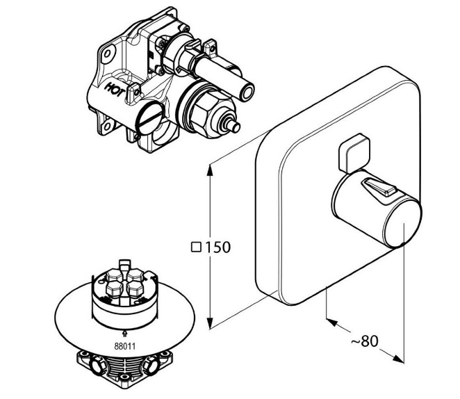Данная модель имеет кнопку вкл/выкл, отвечающую за подачу единого нерегулируемого потока воды, а также рукоять для регулировки температуры воды. В комплекте идет: функциональный элемент с керамическим картриджем, внешняя монтажная часть, крепление.