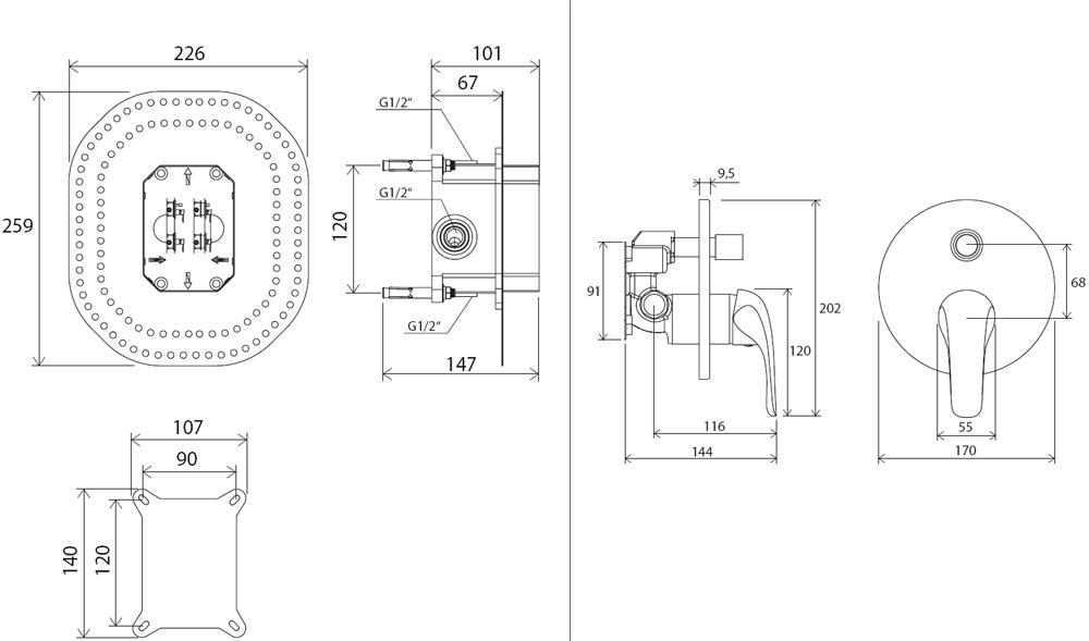 - встраиваемый механизм для смесителей скрытого монтажа R-box RB 070.50 не входит в комплектацию смесителя, его нужно докупать отдельно