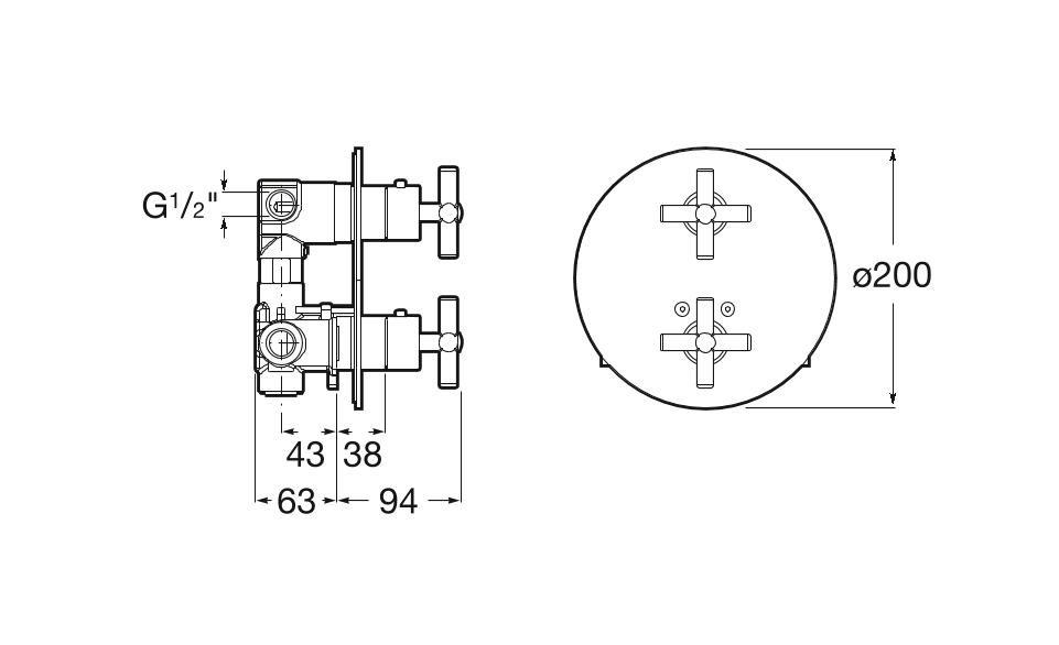 1) Смеситель для душа встраиваемый Roca Loft двухвентильный с термостатом