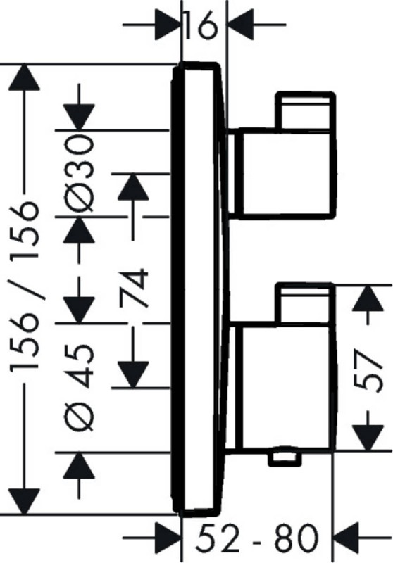 Смеситель для душа встраиваемый с термостатом на 2 потребителя Hansgrohe коллекция Ecostat Square хром 15714000