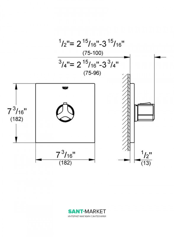 - универсальная встроеный механизм GROHE GrohTherm (34 331) или (34 397)