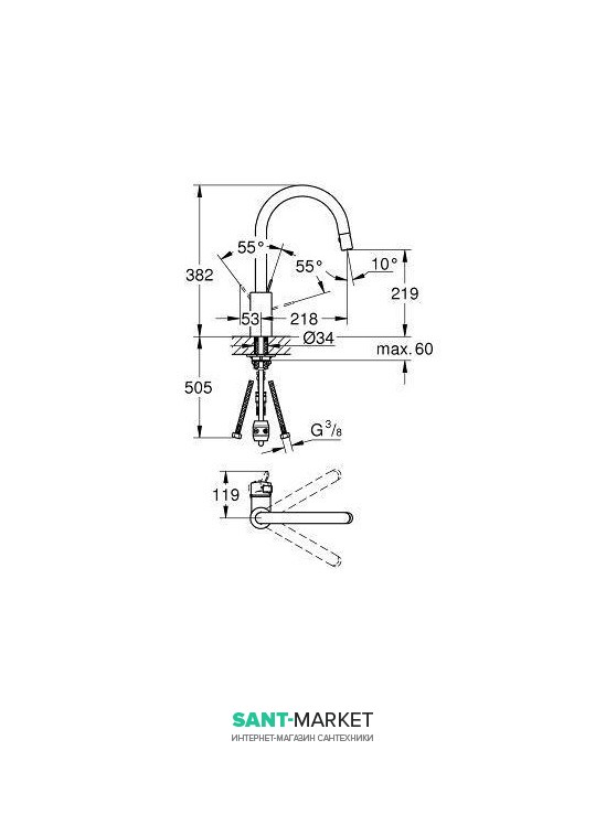 Смеситель для кухни Grohe Eurosmart Cosmopolitan однорычажный 31481000
