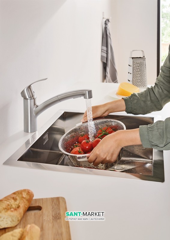 Смеситель для кухни с выдвижной лейкой Grohe Eurosmart однорычажный суперсталь 30305DC0