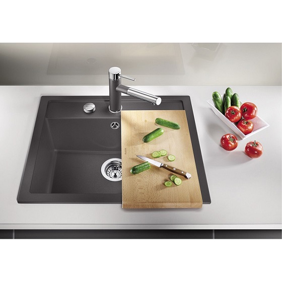 1) Смеситель для кухни Blanco Alta-S Compact однорычажный с выдвижным изливом хром/черный