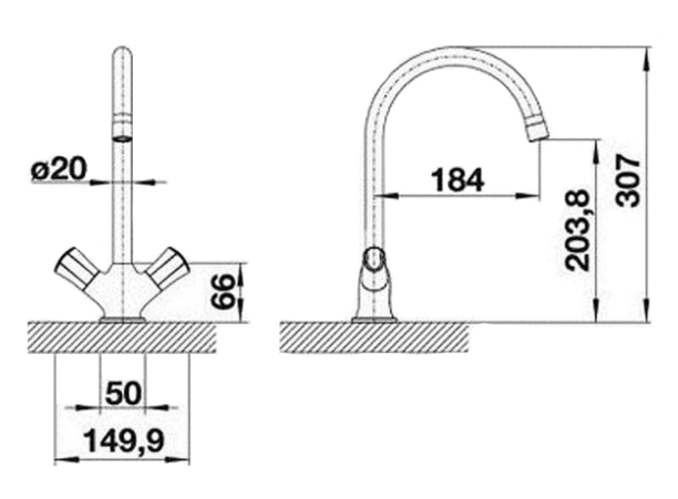 1) Смеситель для кухни Blanco Amona двухвентильный