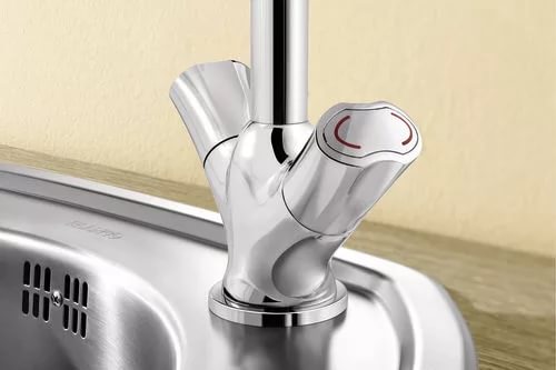 - Удобный смеситель с двумя рычагами для раздельного управления холодной и горячей водой