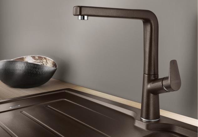 На кухне при активном приготовлении пищи возникает потребность в использовании качественных смесителей, которые смогут выдержать постоянное использование. На этот случай компания Бланко выпустила простую внешне модель Blanco Avona, которая благодаря своей универсальности и практичности сможет участвовать в создании интерьера в классическом стиле и, наоборот, более современном, стиле хай-тек. Излив находится на уровне почти 25 см, он не мешает мытью большого количества посуды, встроенный в него рассекатель направляет воду в нужную сторону, регулирует ее расход и насыщает кислородом, делая ее мягче, а звук от стекающей струи не таким неприятным и громким. Управление стильной моделью смесителя осуществляется через такой же сбоку аккуратный рычаг, который демонстрирует лёгкость и плавность работы, сразу реагирует на Ваши требования и благодаря встроенному дисковому картриджу минимизирует протечки и сбои в работе.