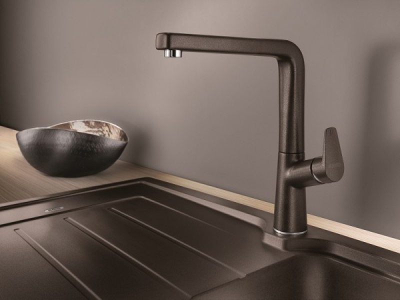 На кухне при активном приготовлении пищи возникает потребность в использовании качественных смесителей, которые смогут выдержать постоянное использование. На этот случай компания Бланко выпустила простую внешне модель Blanco Avona, которая благодаря своей универсальности и практичности сможет участвовать в создании интерьера в классическом стиле и, наоборот, более современном, стиле хай-тек. Излив находится на уровне почти 25 см, он не мешает мытью большого количества посуды, встроенный в него рассекатель направляет воду в нужную сторону, регулирует ее расход и насыщает кислородом, делая ее мягче, а звук от стекающей струи не таким неприятным и громким. Управление стильной моделью смесителя осуществляется через такой же сбоку аккуратный рычаг, который демонстрирует лёгкость и плавность работы, сразу реагирует на Ваши требования и благодаря встроенному дисковому картриджу минимизирует протечки и сбои в работе.
