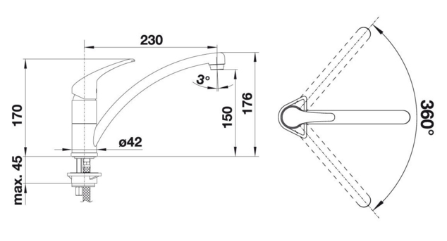Для компактной и небольшой мойки создана эргономичная модель смесителя Blanco Bravon. В ней продуманы все детали, использованы качественные материалы и гарантирована длительная эксплуатация. Простая небольшая форма модели Bravon обеспечивает максимальные удобства, Вы будете получать без ожидания воду необходимой температуры и давления. От Вас даже не требуется аккуратного использования и тщательного ухода, все сделает кухонный смеситель Bravon. Его выносливый латунный корпус защищён от влияния высокой температуры, выдерживает до 280 градусов, не подвергается образованию ржавчины, противостоит коррозии, любые удары посудой или другими кухонными приборами не смогут повредить его. Излив крана может поворачиваться на угол до 360 градусов, в него встроен рассекатель, сокращающий ненужные брызги, и защищает от появления известковых отложений. Такая насадка сохранит от жесткости воды и перепадов давления.