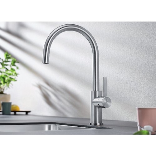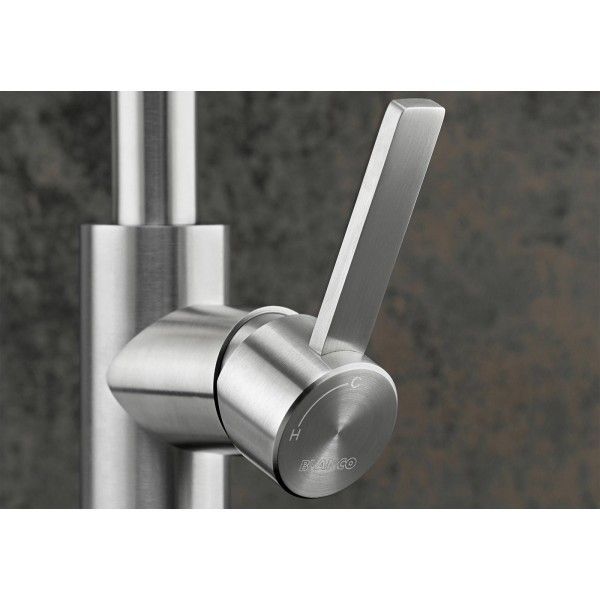 Смеситель Blanco Candor из нержавеющей стали выполнен в лаконичном классическом дизайне и превосходно подходит для любого кухонного интерьера. Высокий излив округлой формы, который может поворачиваться на 360 градусов, делает эксплуатацию устройства максимально комфортной. Благодаря рычагу управления с вертикальным нейтральным положением, прибор можно устанавливать даже непосредственно вплотную к стене. Модель ориентирована на сбережение природных ресурсов: базовые настройки запрограммированы на подачу холодной воды.
