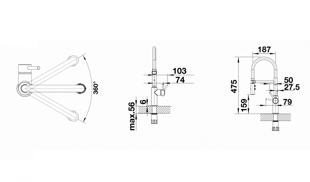 - Благодаря небольшой высоте смеситель можно разместить под навесными шкафами
