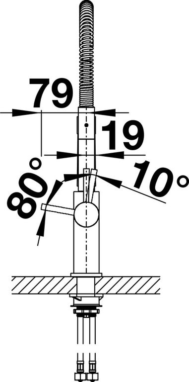 - Гибкий излив (пружина из нержавеющей стали) с подвижным шлангом
