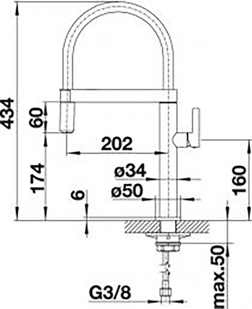 Высота излива 434 мм