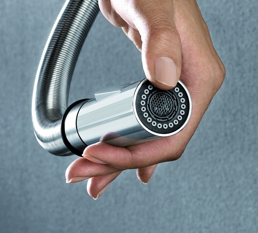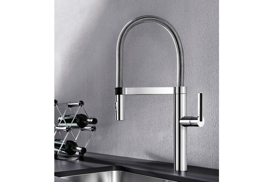 - Изящная пружина из нержавеющей стали обеспечивает свободу движения излива