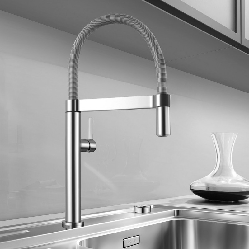 Эксклюзивный смеситель Blanco Culina-S mini характеризуется оригинальным дизайном, компактным размером и обновленными техническими характеристиками для еще более комфортной работы. Дугообразный высокий излив оборудован специальным магнитным фиксатором для удобного закрепления шланга. Наличие стальной пружины обеспечивает свободное движение излива и, как следствие, широкие возможности для эксплуатации.