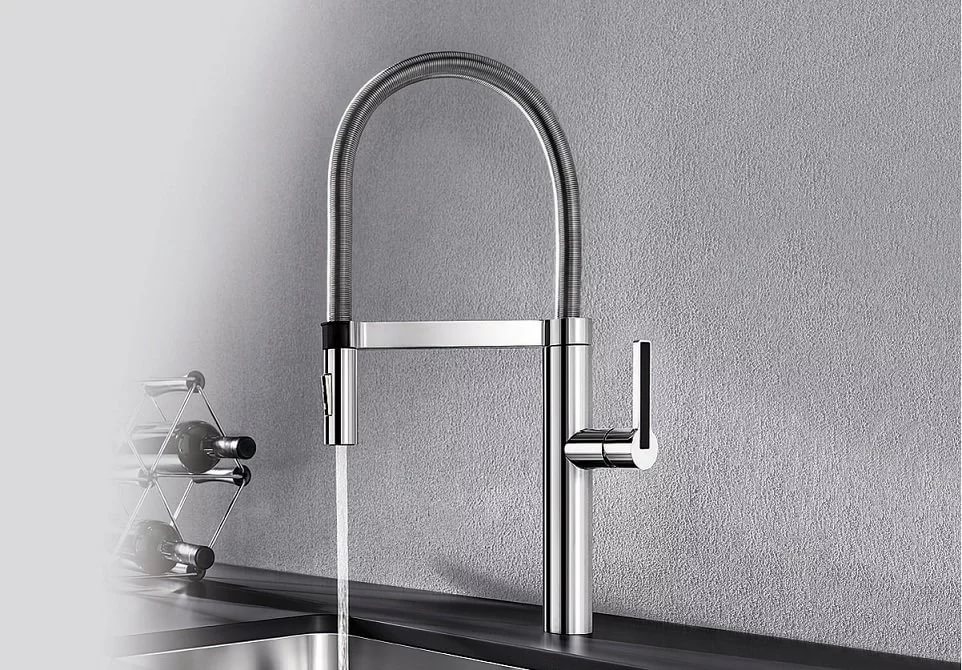 - Изящная пружина из нержавеющей стали обеспечивает свободу движения излива