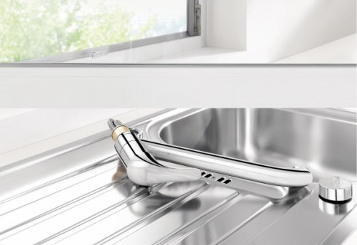 Современный интерьер кухни может быть самым непредсказуемым, рабочая зона может находиться в любом месте кухонной площади и это будет удобно. Для таких случаев производители техники и кухонных аксессуаров производят оригинальные товары, которые будут способствовать приятному нахождению и работе на кухне. Немецкая компания Бланко не отстаёт и выпустила на рынок модель с практичным корпусом, который сможет уместиться в кухонной раковине возле окна, Blanco Daras-F. Благодаря своим размерам, эта модель Blanco не создаст дискомфорта и будет удобна для управления в ограниченном пространстве. Кроме своей компактности кран Daras-F имеет гарантию длительной работы, благодаря чему вы сможете использовать его в условиях перепадов температуры воды, сбоях в ее давлении, такие свойства он заслужил материалу латуни, из которой выполнен. В оборачиваемый излив крана Daras-F встраивается аэратор, специальная насадка, позволяющая экономить при активной эксплуатации воды, она насыщает воду кислородом, делает мягче и приятнее на ощупь. На верхней части корпуса модели Daras-F располагается один рычаг, который отвечает за своевременную подачу необходимого давления и температуры воды. Его эффективность зависит от встроенного вовнутрь керамического картриджа, он создаёт все условия, чтобы минимизировать протечки и сбои в работе крана.