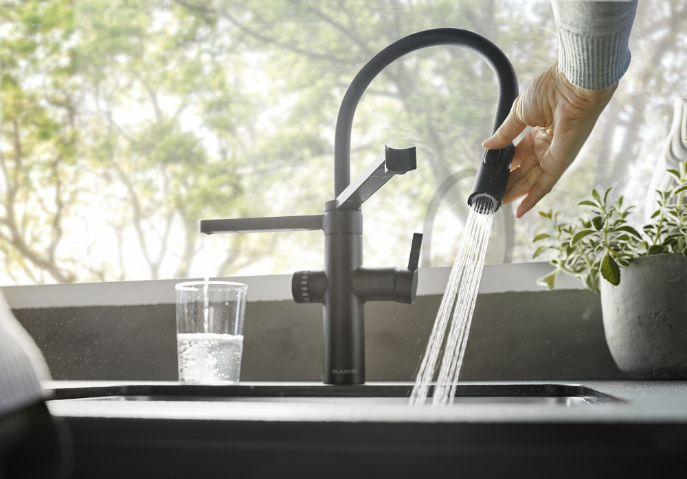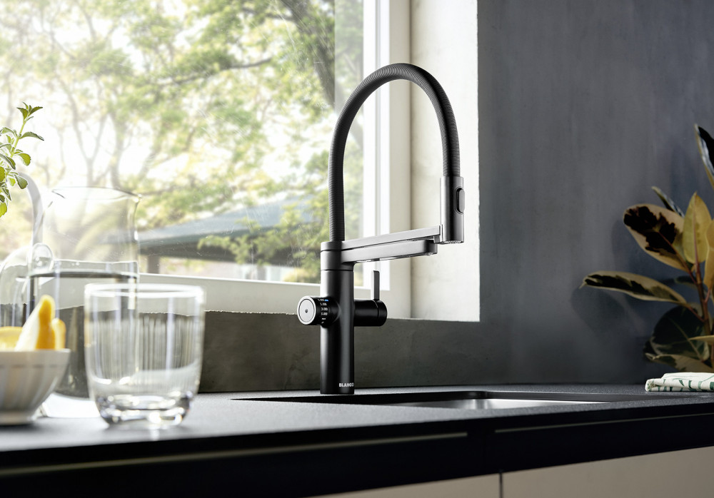 Смеситель для кухни Blanco Evol-S Pro Filter с фильтром и выдвижной лейкой черный матовый 526636