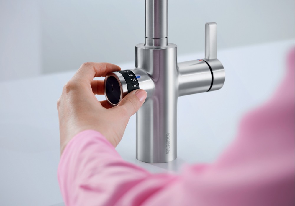 Смеситель для кухни Blanco Evol-S с функцией мерного стакана подойдет тем, кто любит удобство и точность во всем! С помощью поворотной шкалы вы можете задать необходимый вам объем воды, после чего нажать сенсорную кнопку сбоку, и смеситель подаст вам нужное количество воды, регулируя при этом мощность напора в зависимости от выбранного объема: чем больше желаемое количество воды, тем сильнее струя и быстрее поток воды. В результате вы не тратите лишнее время на ожидание. Еще один плюс кухонного смесителя Blanco Evol-S - экономия расходов и сбережение природных ресурсов. Ведь точное потребление воды означает прекращение ненужного расхода самого важного ресурса на земле. Для еще большего удобства в наполнении больших ёмкостей смеситель Evol-S оснащен выдвижной лейкой с нейлоновой оплеткой шланга.