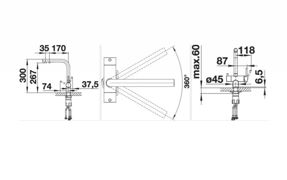 1) Смеситель для кухни Blanco Fontas II однорычажный под фильтр SILGRANIT® черный