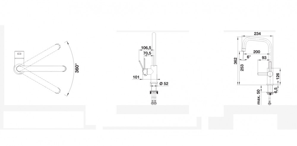 - Поворотный на 360° излив для большей досягаемости