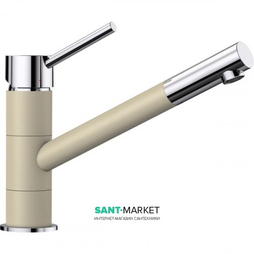Смеситель кухонный Blanco KANO – красивая модель в элегантном сочетании хромированного металла и гранита Silgranit. В кране установлен долговечный керамический картридж. Все управление температурой и напором воды выполняется одним поворотом рычага, поэтому на кухне такой смеситель незаменим. Высокий излив и его вращение на 360⁰ позволяет без проблем мыть, ополаскивать посуду в мойке. На изливе установлен рассекатель с запатентованной поверхностью, на которой не задерживаются капельки воды, поэтому образование известкового налета сводится к минимуму. В основном эта модель подбирается для моек с небольшими габаритами. Мыть такой смеситель рекомендуется безабразивными средствами.