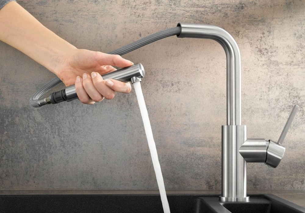 1) Смеситель для кухни Blanco Lanora-S-F с вытяжной лейкой нержавеющая сталь