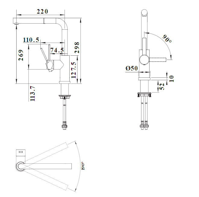 - Высокий выдвижной носик для удобного наполнения кастрюль, ваз и для удобства ухода за большими мойками.