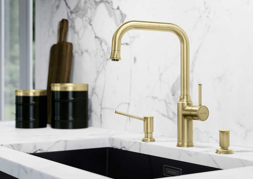 Смеситель для кухни Blanco Livia-S с выдвижной лейкой PVD сатиновое золото 526687