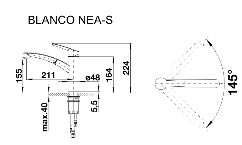 1) Смеситель для кухни Blanco Nea-S Silgranit однорычажный