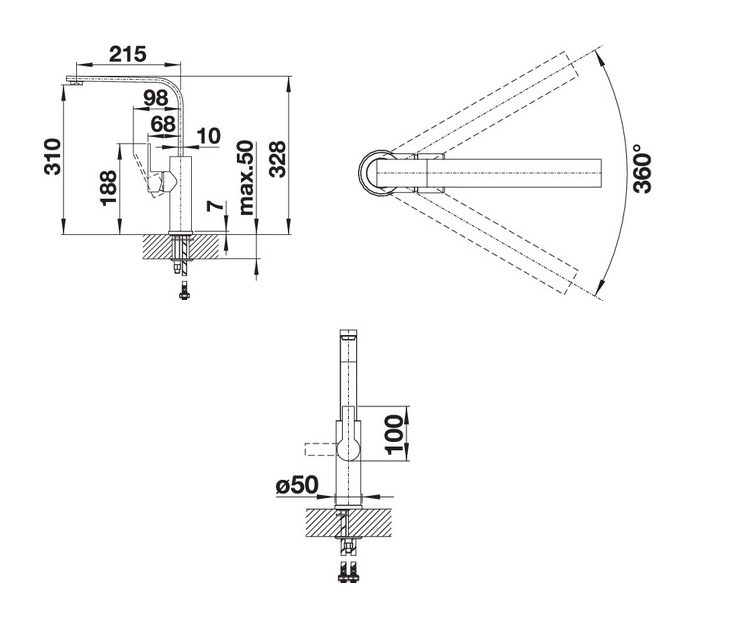 - Вращающийся на 360° излив увеличивает функциональность