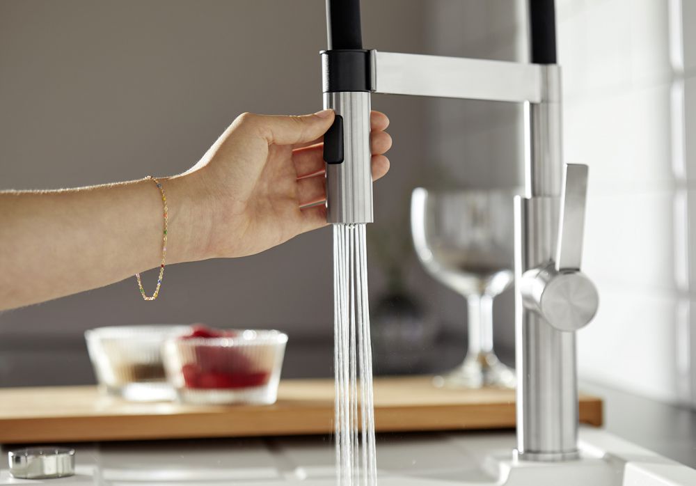 - Гибкий излив с двумя режимами подачи воды: легкое переключение между аэрированной струей и мощным душем