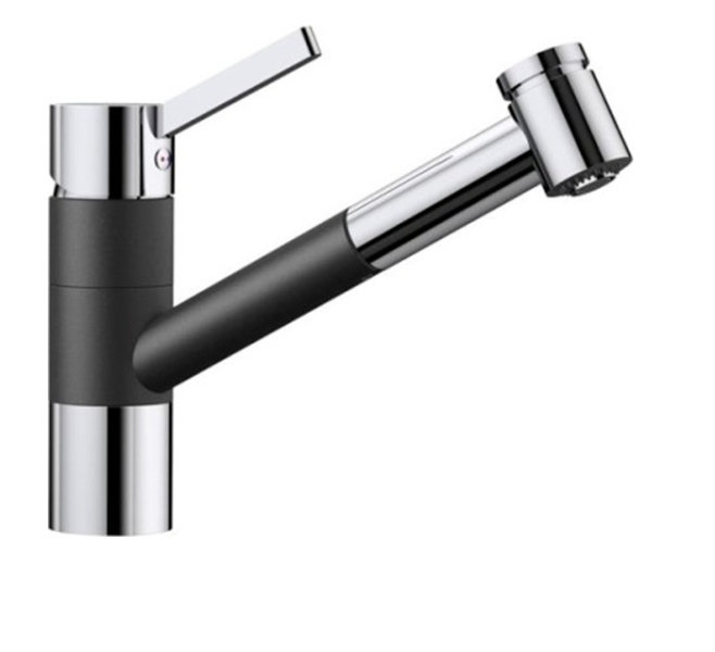 1) Смеситель для кухни Blanco Tivo-S с вытяжной лейкой хром/черный
