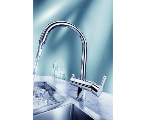 - Один совмещенный излив для питьевой и обычной воды с разделением рассекателя