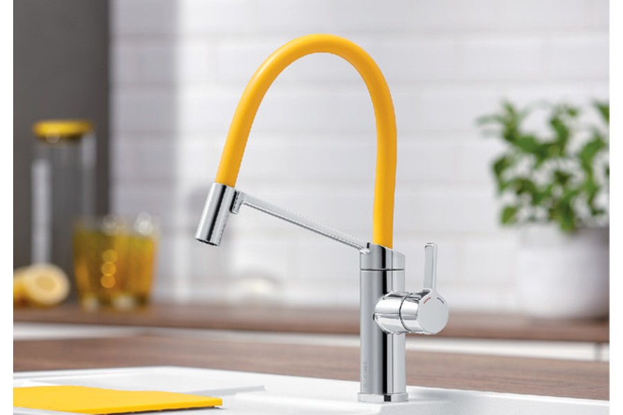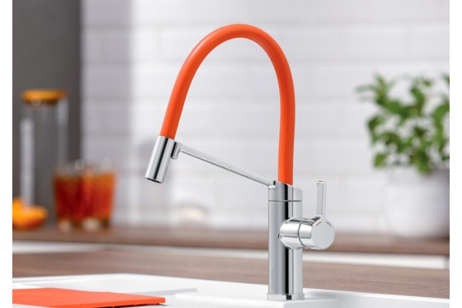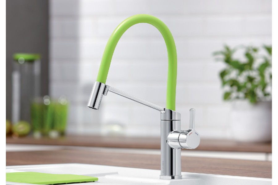 - В комплект смесителя впервые входят четыре цветных съемных шланга: киви, апельсин, лимон и лава (предустановленный цвет)