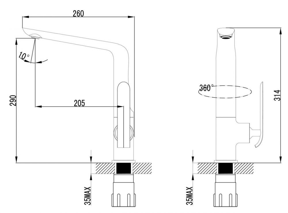 Высота излива 290 мм