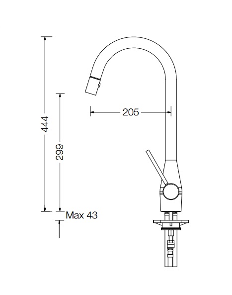 - Длина излива: 205 мм