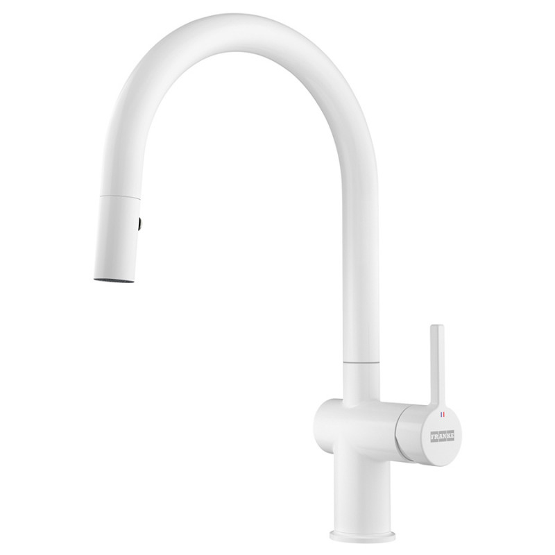 Смеситель для кухни Franke Active J с выдвижной лейкой и ламинарным потоком белый матовый