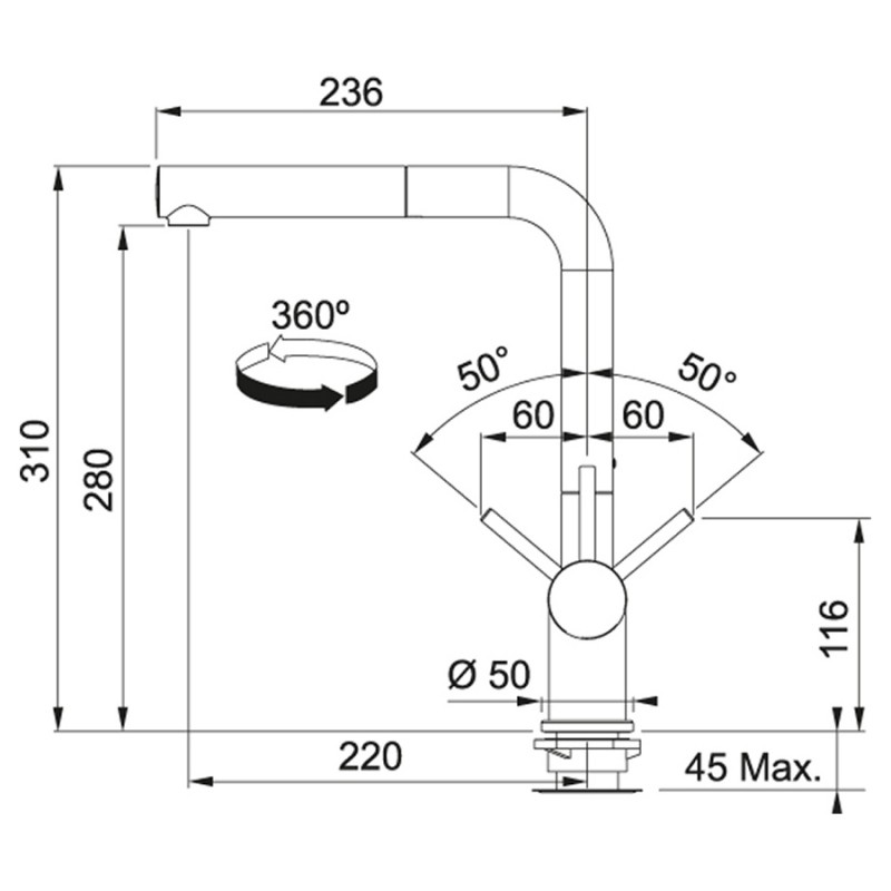 Угол поворота излива 360°
