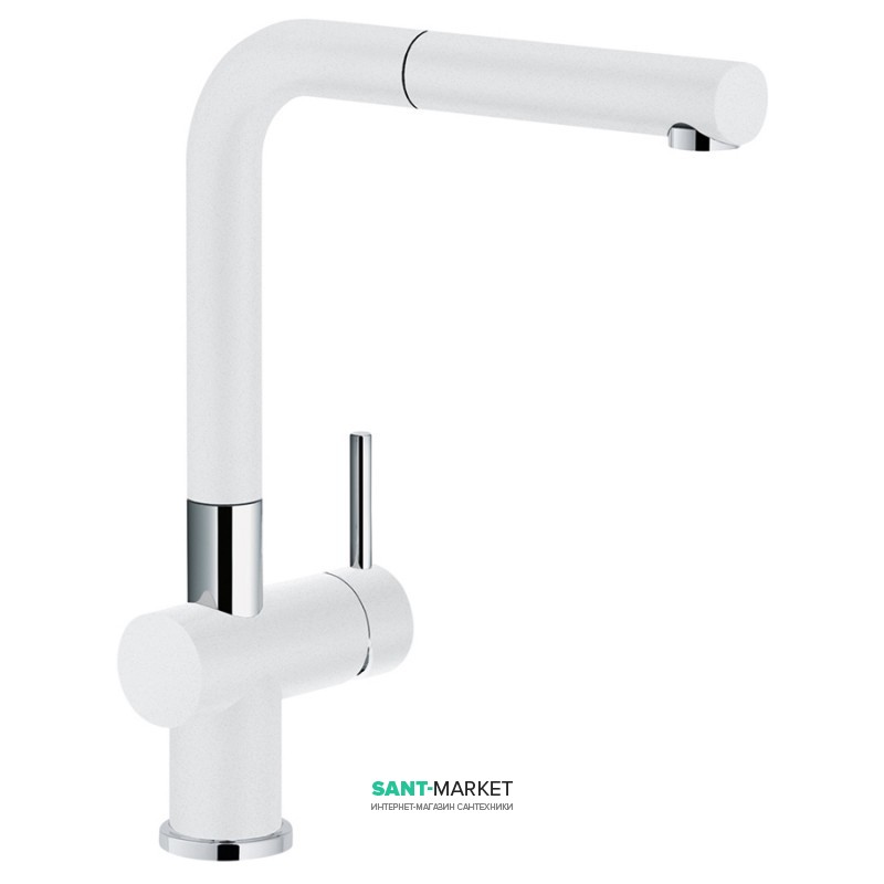 1) Смеситель для кухни Franke Active Plus Doc однорычажный с выносным изливом латунь покрытие Fragranite хром/белый