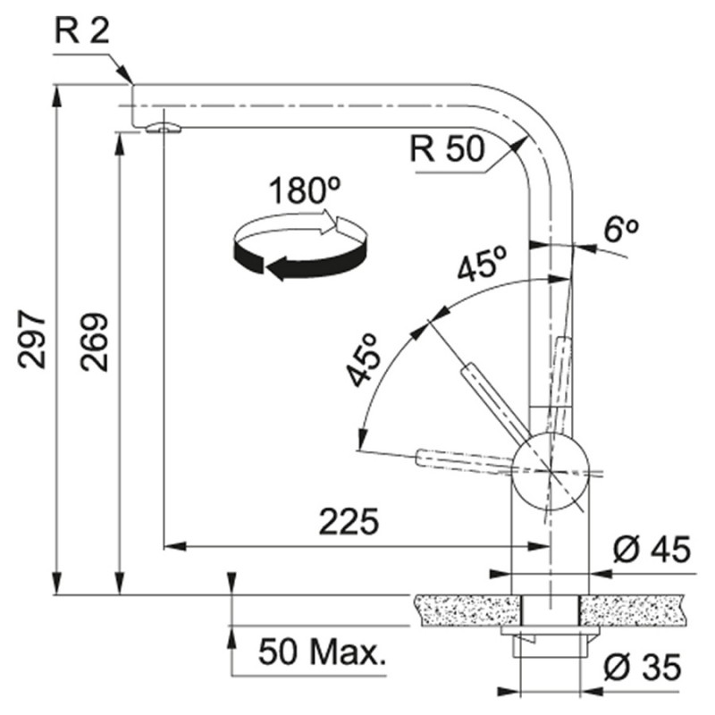 Все смесители Франке устанавливаются в отверстие диаметром 35 мм.