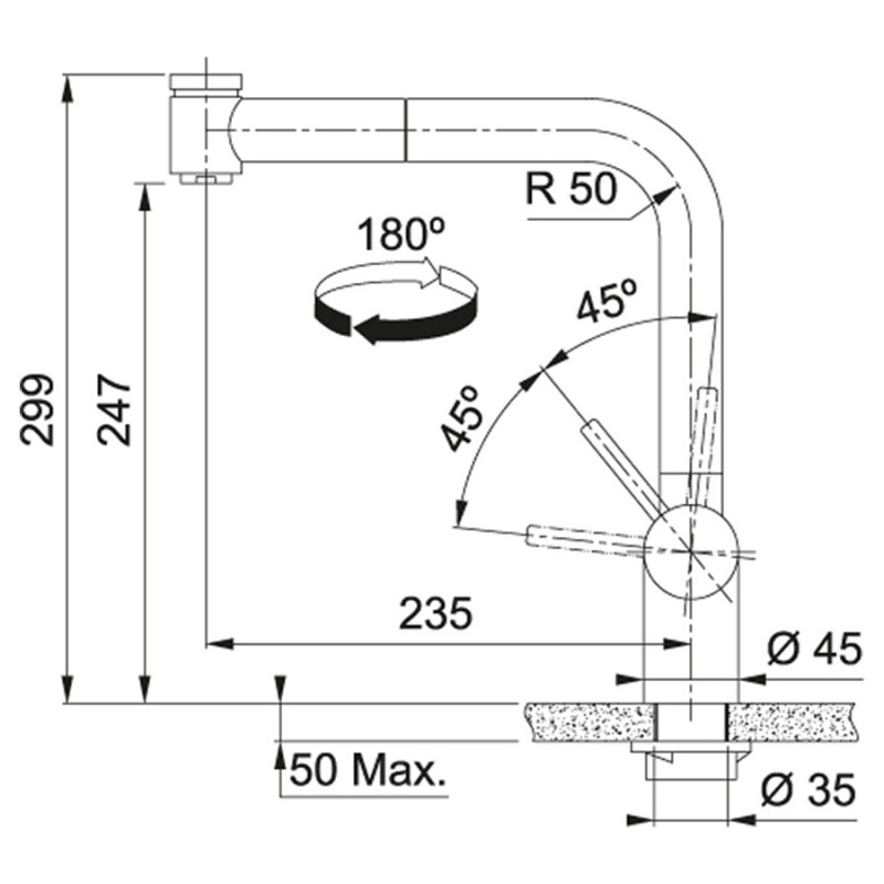 Все смесители Франке устанавливаются в отверстие диаметром 35 мм.