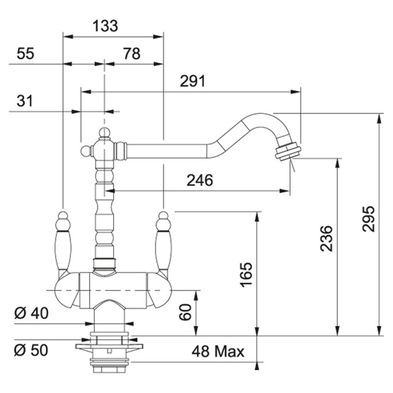 Высота излива 236 мм