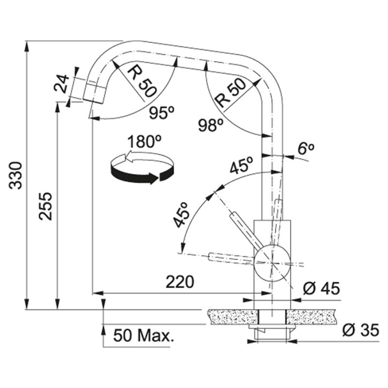 Все смесители Франке устанавливаются в отверстие диаметром 35 мм.