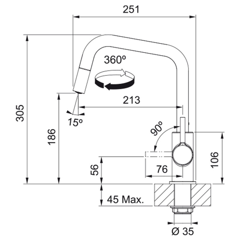 Кухонный смеситель Franke Lina U Pull Down — современный и функциональный смеситель с выдвижным изливом, который обеспечивает максимальное удобство при мытье посуды и уходе за кухонной мойкой.