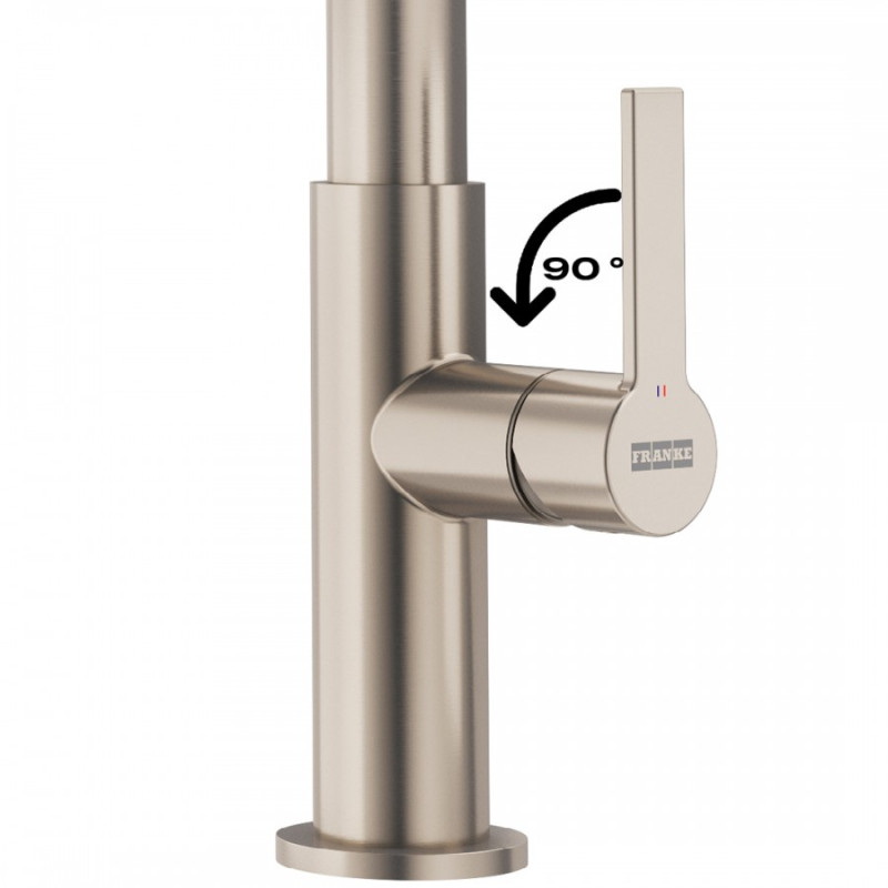 Смесители Franke. Они являются прекрасным дополнением к мойкам данной компании. Так, для моек из нержавеющей стали выпускаются хромированные смесители, а для моек из фрагранита смесители под цвет фрагранита. Покупатель может подобрать смеситель в зависимости от своих вкусов и потребностей. Ассортимент продукции достаточно широк. Есть однорычаговые смесители, смесители с одной ручкой и с открытой рабочей ручкой; угол поворота может составлять 120 и 360 градусов, также есть смесители с выносным шлангом. Объединяет все эти модели высокое европейское качество, все они имеют 1 класс шумности, и предназначены для установки в отверстие диаметром 35 мм.