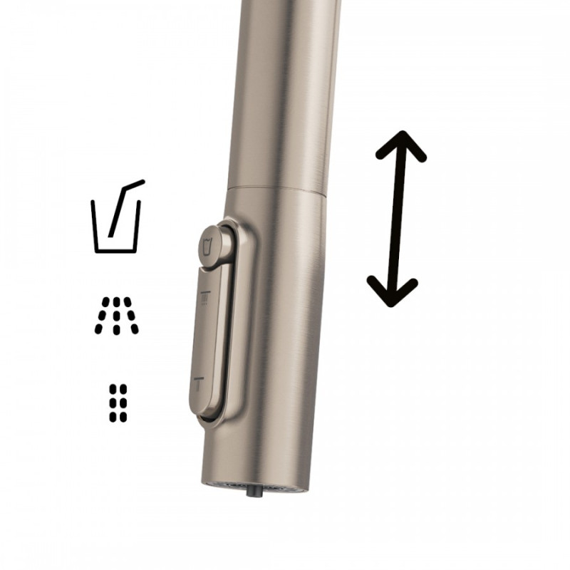 - Выдвижной излив — гибкость и удобство для наполнения больших ёмкостей и очистки мойки.
