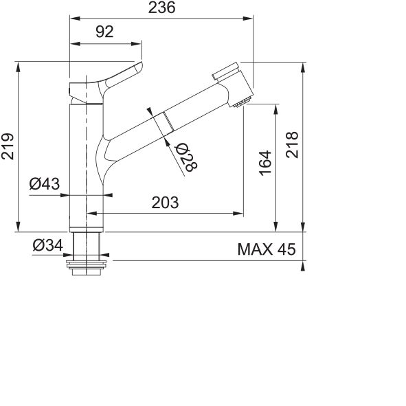 - Смеситель с одним рычагом и выносным шлангом