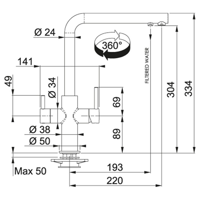 Смеситель Franke Neptune Clear Water предназначен для присоединения к водопроводной и фильтрованной воде. Один рычаг включает холодную и горячую воду, другой — фильтрованную. Благодаря современному дизайну смеситель подойдет к наиболее популярным моделям кухонь.