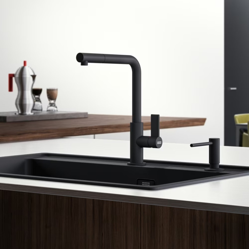 Смеситель для кухни Franke Neptune Evo с выдвижной лейкой черный матовый 115.0711.725